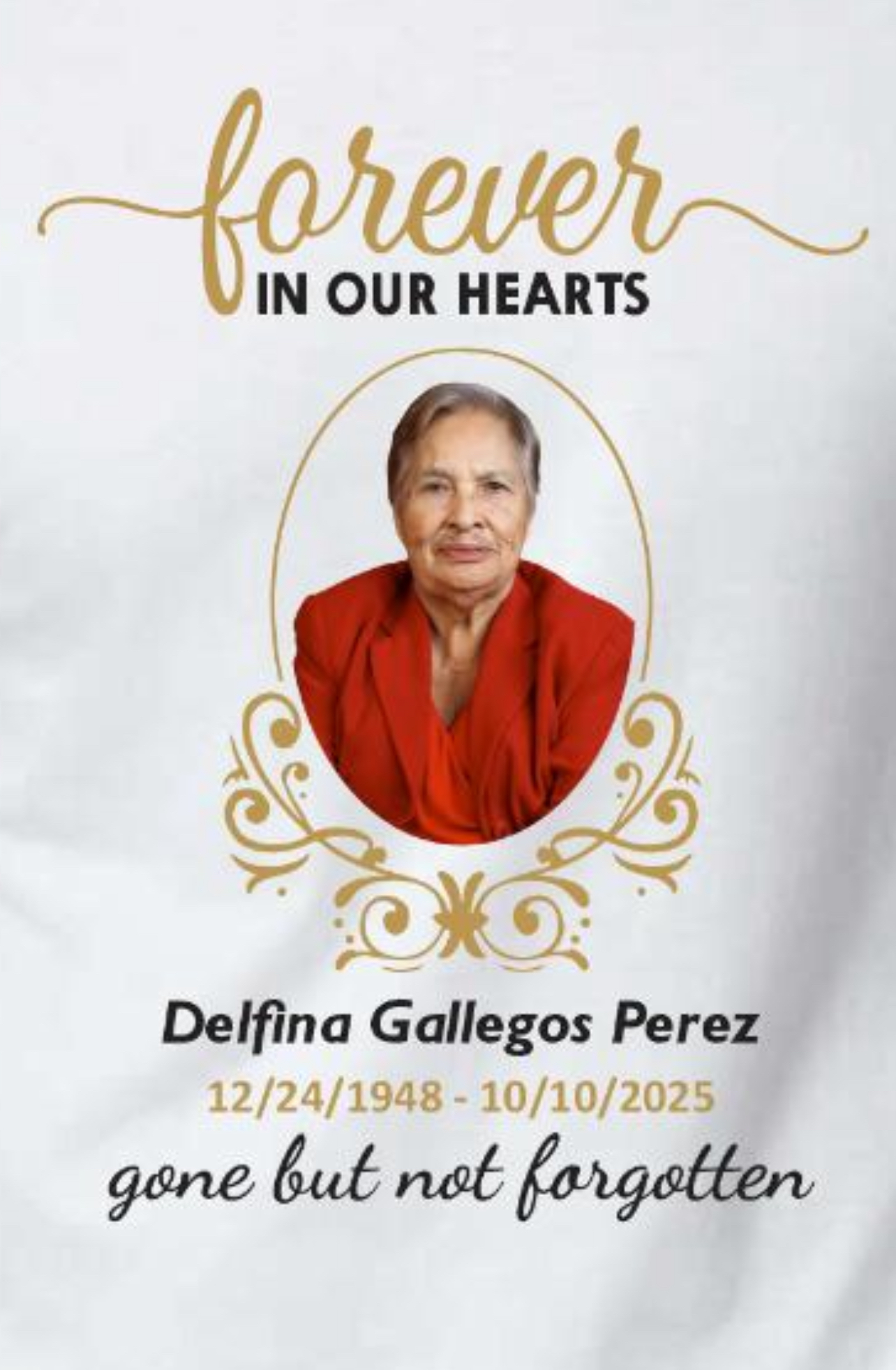 Con profundo pesar compartimos el fallecimiento de Delfina Gallegos Pérez, quien partió a la presencia del Señor el 10 de octubre de 2025, a la edad de 76 años, en Humble, Texas.